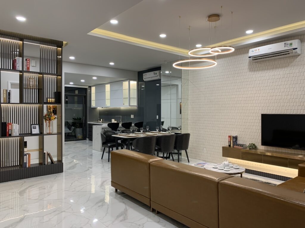 + Phòng khách: Cần bố trí nhiều điểm sáng đề phục vụ cho nhu cầu sinh hoạt của gia đình, đón tiếp khách, xem TV….. Đèn chiếu sáng phòng khách phải đảm bảo được sự ấm cúng, gần gũi, mang đến cảm giác thoải mái cho các thành viên khi ở trong căn phòng.