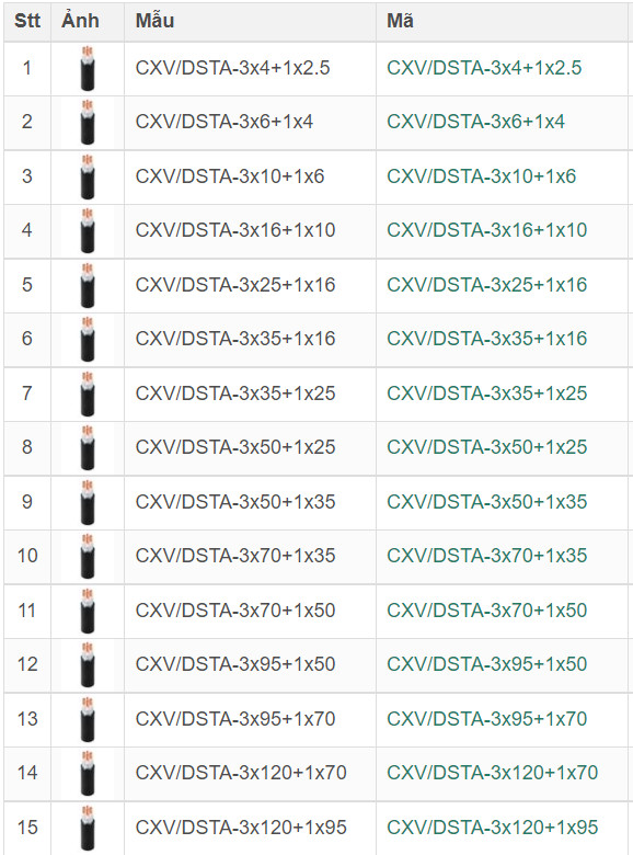 Các loại dây cáp điện LION CXV/DSTA-3×4